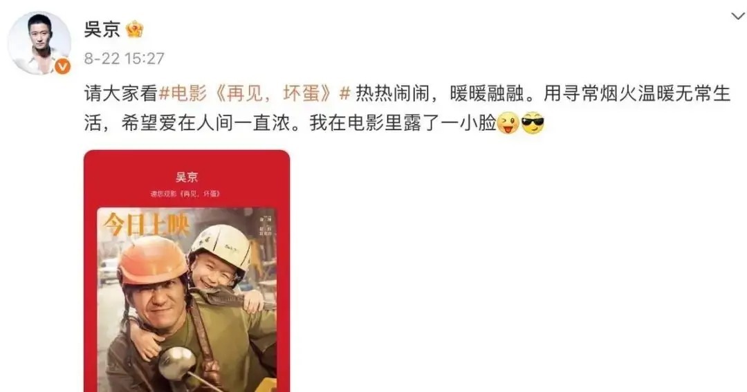 尽管吴京发微博一直在宣传《重逢,坏东西》,而况自掏腰包包场、录VCR喊话、酬酢媒体小作文写到凌晨,夸这片子“接地气的童话感”。可惜排片和上座率都贼低,只可接纳悲剧的结局!