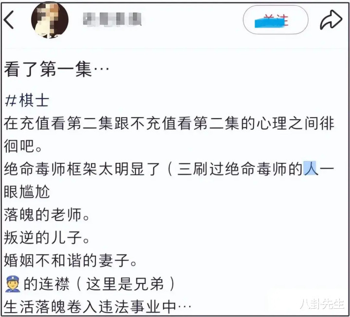 先说第少量,《棋士》确凿抄袭了吗?《绝命毒师》这部爆款好意思剧,八先生前两年照旧追完五季了,以为如实很精彩,印象真切。看《棋士》时,八先生全皆期许不到《绝命毒师》,毕竟根柢即是不同的故事。自后看了谴责《棋士》抄袭的网友的科普,说它“抄”了《绝命毒师》的主要东说念主物关系的架构、主角东说念主设,仔细想一想,如实有点像。
