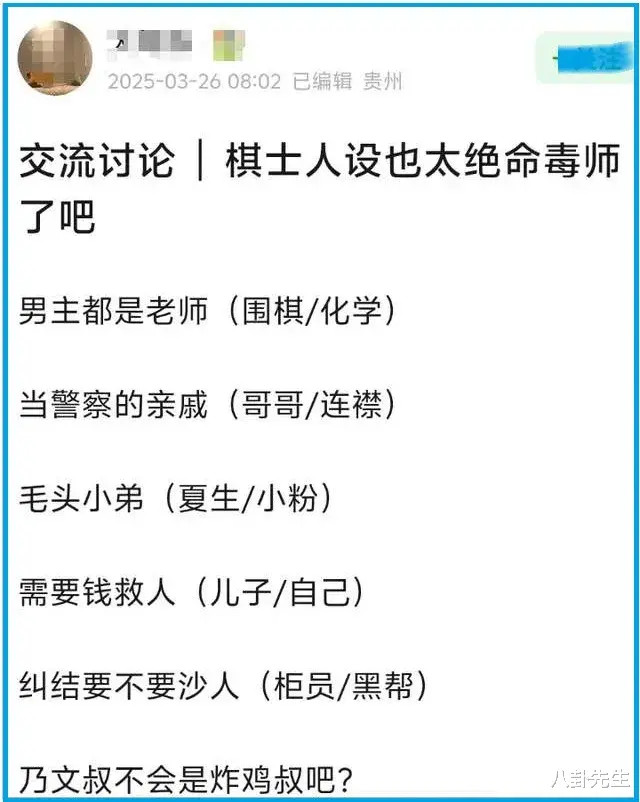 但东说念主物关系和东说念主设仅仅一部剧的一小部分,并且仅仅某些方面访佛;非要找共同点的话,其实许多悬疑剧皆有这种情况。单从故事布景、剧情、桥段等来说,两部剧全皆莫得共同点。关于一部影视作品来说,抄袭是天大的指控,而《棋士》显明仅仅模仿了主要东说念主物关系架构,跟抄袭是两码事。