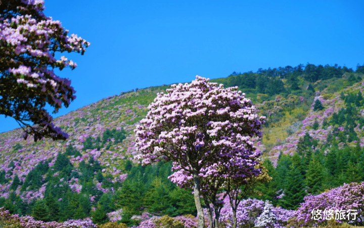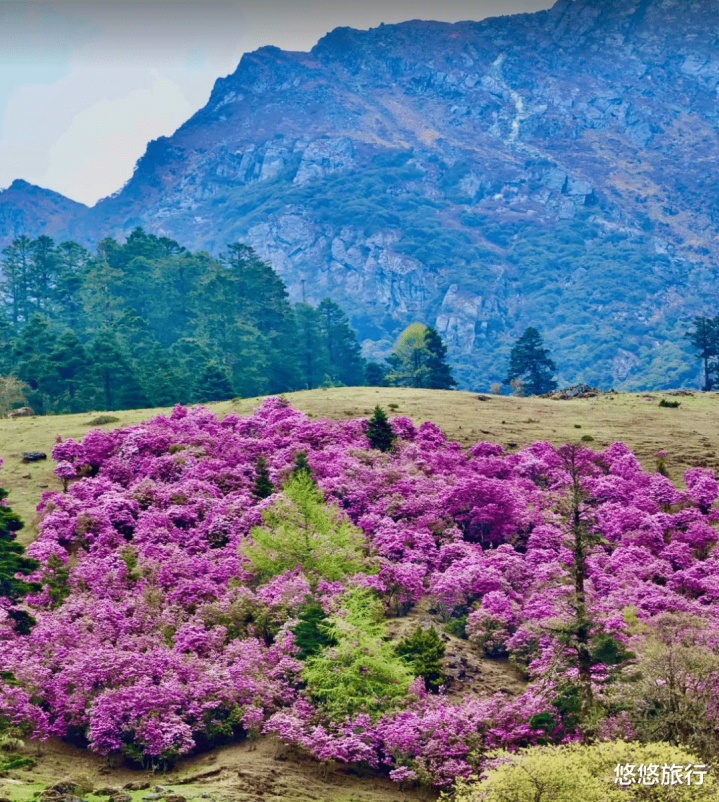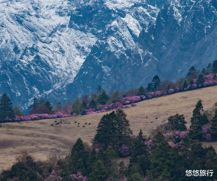 左拥玉龙雪山,右抱哈巴雪山,海拔3700米的云表草甸,铺满百年杜鹃林峻岭杜鹃5月怒放,开放成流动的粉雾,顺手拍都是壁纸级画面。