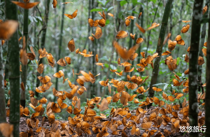 红河州金平县马鞍底乡,是自然的动植物基因库,丛林遮蔽率高达70%,蝴蝶种类达400余种。每年5月下旬-6月中旬,数以亿计的箭环蝶在溪流边、山谷里、村寨旁尽情遨游,变成寰球悲凉的生态奇不雅。