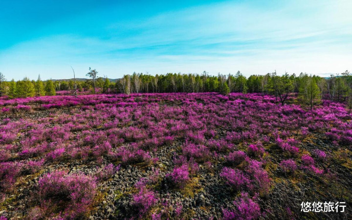南边接近立夏,朔方的春天才刚刚启动,5月上旬的呼伦贝尔,扎兰屯、阿荣旗、莫力达瓦达斡尔族自治旗、鄂伦春自治旗等地,均能不雅赏到纷乱的杜鹃花林。