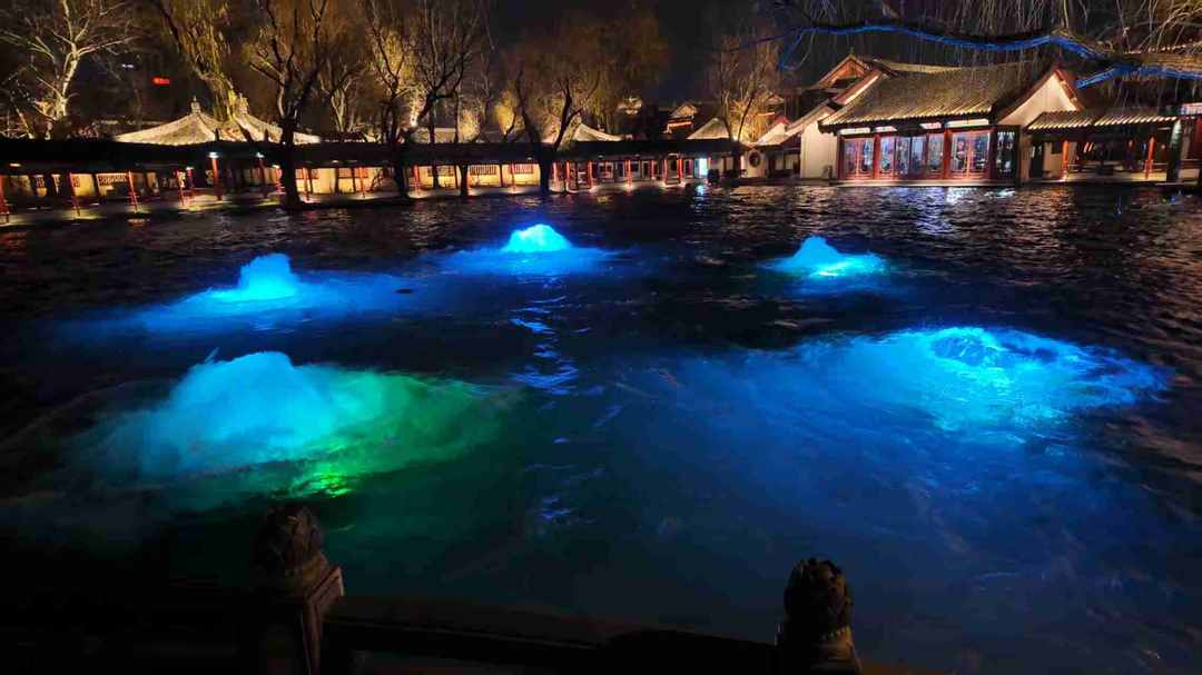 穿过喧哗吵杂的街巷,转入名泉喷涌区,画风为之一变。漱玉泉、梅花泉、墨泉、百脉泉……正在旺喷,记者咫尺,梅花泉的5个泉眼在宽敞的池面上掀翻一尺高的波澜,清冽的泉水溢出泉池,通过眼下石板汇入卑鄙河说念,耳边水声如雷。如斯当然奇不雅,撼动每一位搭客的心旌,让他们驻足夜色衰败的泉畔,痴痴看不够。