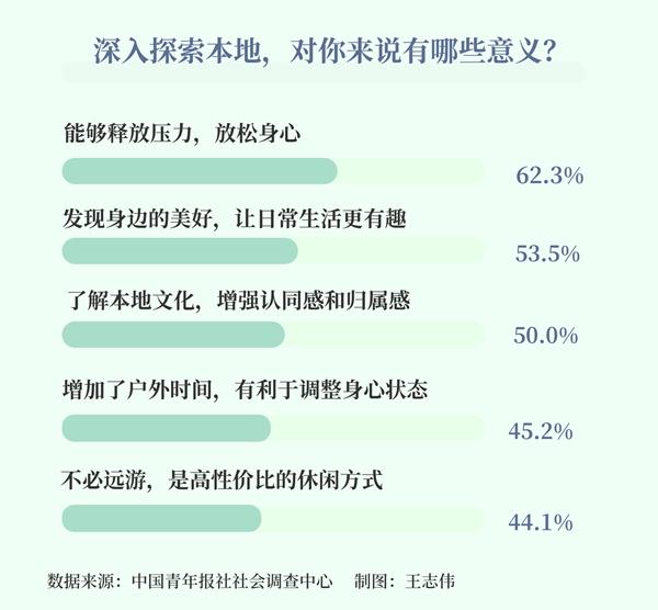 深入探索所活命的地点,公共认为有哪些真谛?拜谒深远,62.3%的受访者认为能开释压力,裁汰身心;53.5%的受访者认为可以发现身边的好意思好,让平日活命更风趣;50.0%的受访者认为能了解腹地文化,增强认可感和包摄感。