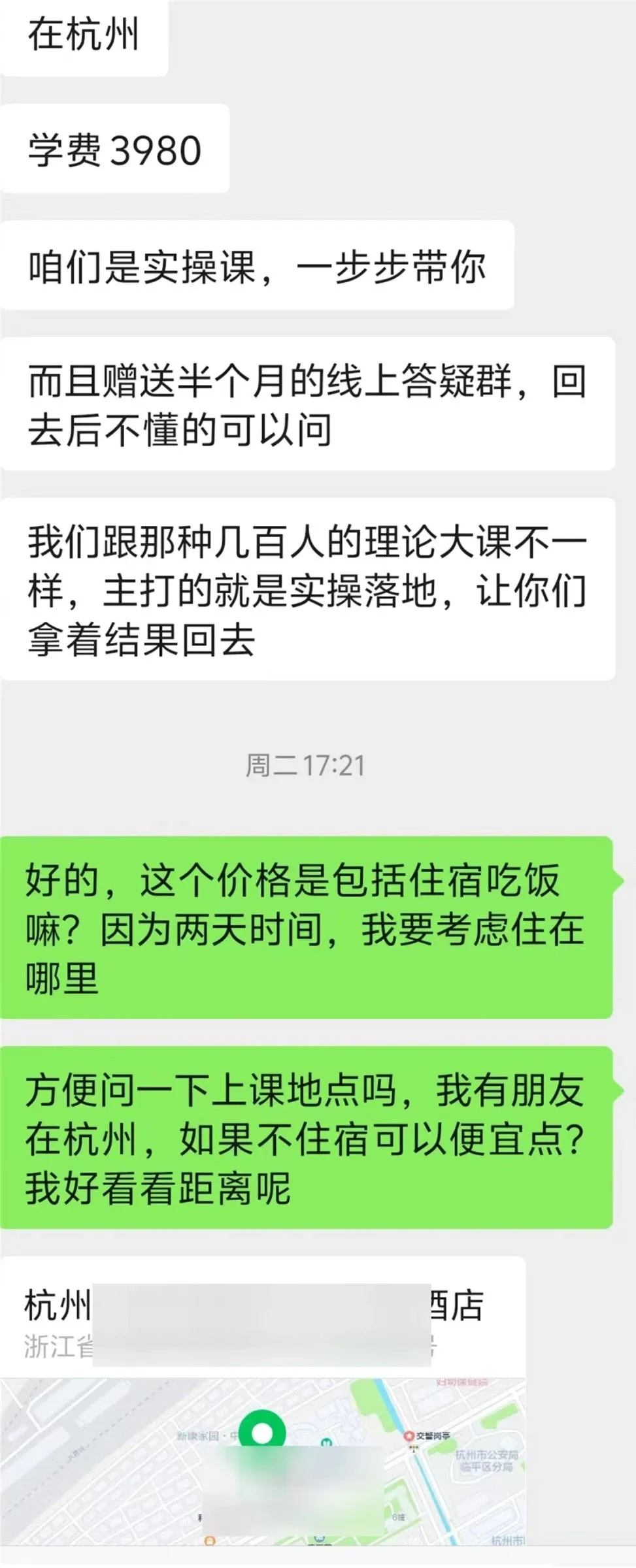 从李某一又友圈自行展示的报名情况之火热及每次课3980元的收费价钱,经见识官初步判定,李某是有一定履行才略的。随后,与团队赶紧商量出践诺决策,详情好李某的上课技能和场地,提前一天前往外省,到达商定场地隔壁进行部署。