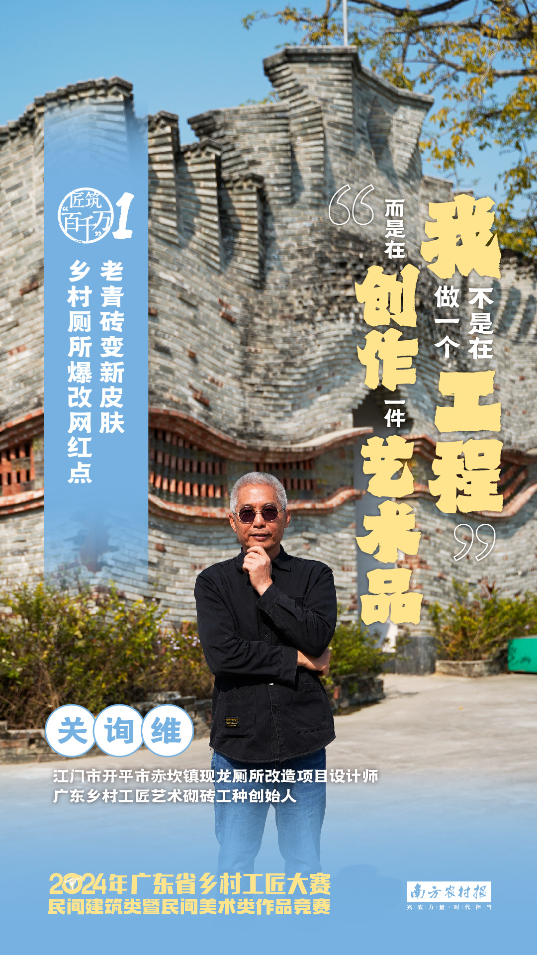 江门市开平市赤坎镇现龙茅厕转变项目贪图师、广东乡村工匠艺术砌砖工种首创东说念主关询维