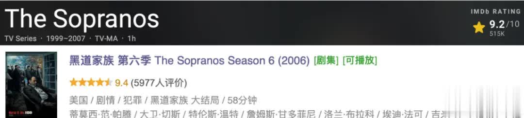 《黑谈眷属》 The SopranosIMDb 9.2分。
