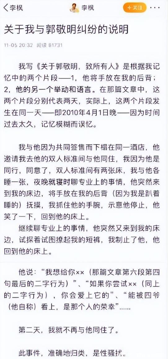 2017年,旗下作者李枫发文指控其性侵,天然郭敬明方矢口否认,但事件于今莫得国法定论。