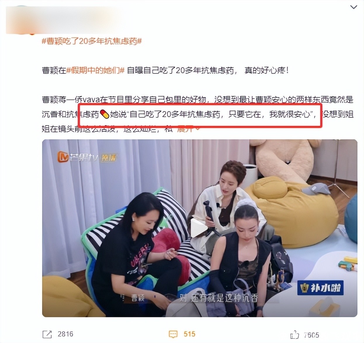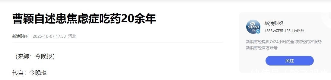 最近,曹颖自曝已连气儿服用抗惊险药物长达二十年,关联话题冲上热搜。