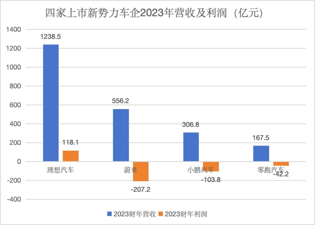 2023年除空想完了年盈利外,蔚来、小鹏、零跑三家新势力巨头均处于失掉景况,零跑汽车年净失掉42.16亿元,小鹏汽车年失掉103.8亿元,蔚来年失掉207.2亿元,近乎是小鹏汽车的两倍。