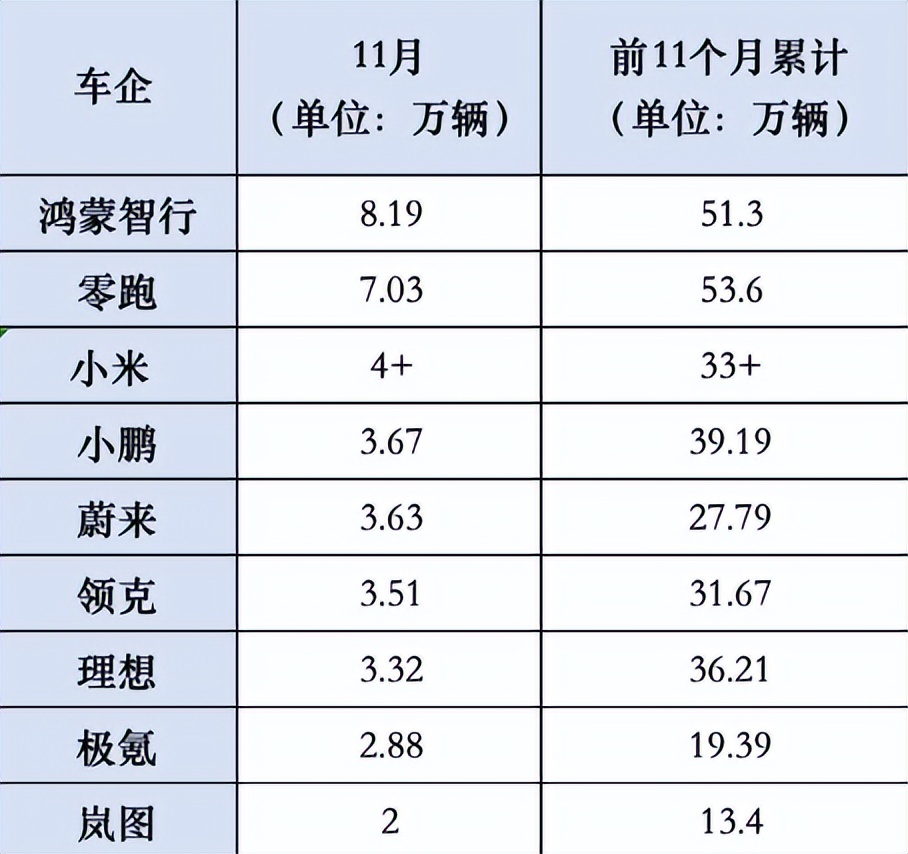 伴跟着年底冲量,11月新势力的座席又洗牌了。