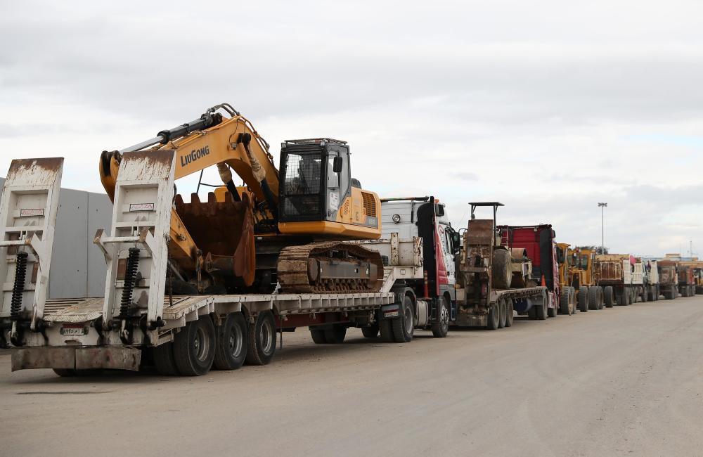 tttttttttttt2月24日,工程车辆在拉法港口埃及一侧恭候参预加沙。新华社记者王东震摄tttttt