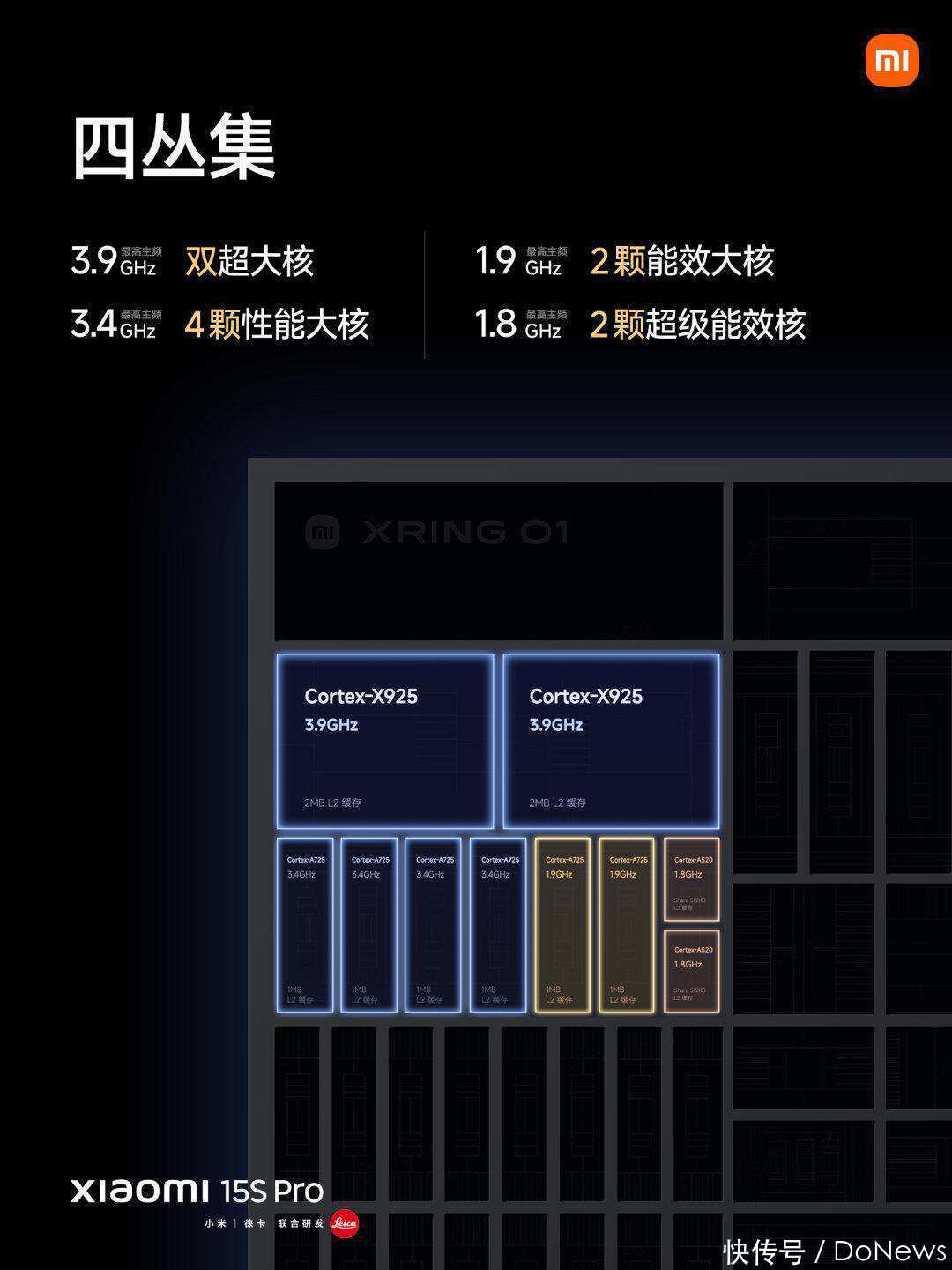 玄戒O1的CPU遴选十中枢四猬集遐想,也等于用了10颗CPU,把它们分红了4组——双超大核、4颗性能大核、2颗能效大核和2颗超等能效核。其中,两个超大核遴选了Arm最新的Cortex-X925架构,其峰值性能进步了36%,最高主频达到了3.9GHz,4颗性能大核和2颗能效大核均为A725,频率有所离别,2颗超等能效核为A520。