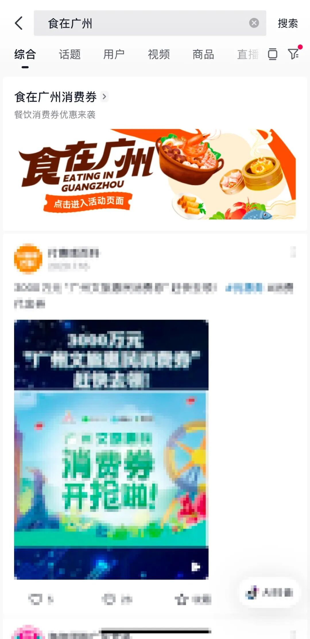 3.在首页搜索栏搜索“广州消耗券”或“食在广州”参加作为页面领取消耗券;