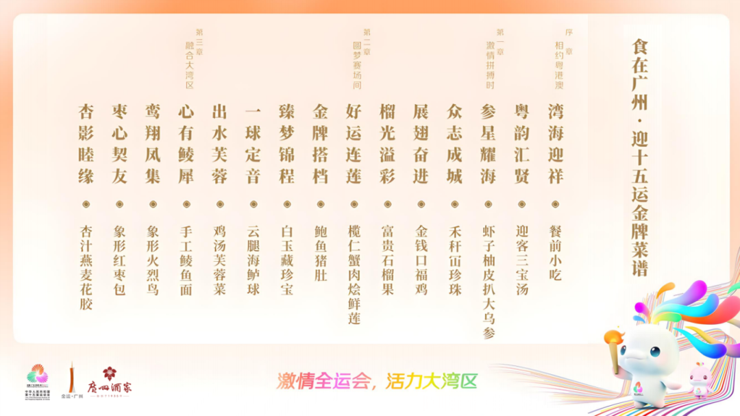 值此嘉会,广州多家餐饮品牌当令而动,绝顶推出多款“全运主题新菜”,以好意思食之名为结合巴结。